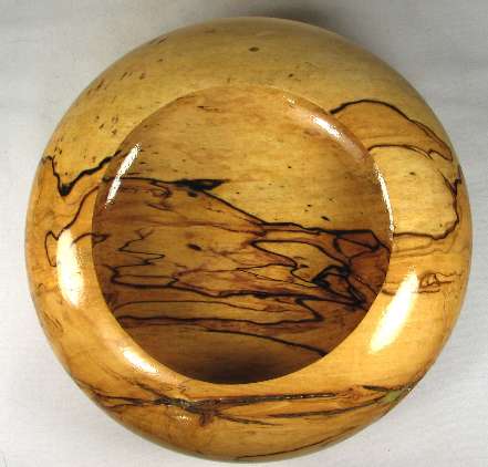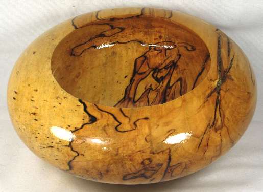comments: the wall is quite thick on this one because I did not want the innner curve to dig any further into the flaw line (see the rear of view 5c below). Despite the major flaw, this is a marvelous piece of spalted maple