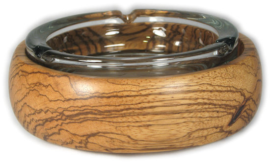 COMMENTS: The glass lifts out and can be cleaned in the dishwasher but the bowl is NOT dishwasher safe --- clean it with a dry or slightly moist cloth. If you like the bowl better as just a bowl and not an ashtray, just toss the ashtray glass. I rarely make bowls of a single wood like this but I decided to try this "ash tray" style just to see how it turned out and although I really like it, I don't know that I'll do any more such.