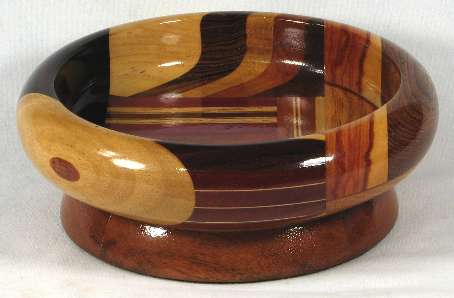 comments: The meranti in the base looks very nice but this is the only bowl it will ever occur on (at least, as the base or any large segment) because it has a high silicon content and is brutally tough on the turning tools.