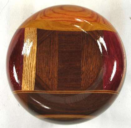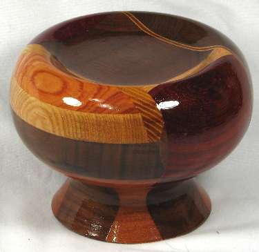 comments: This bowl sat around for 3 years after getting the one coat of regular polyurethane but before getting the spar poly and consequently the padauk in view 3 darkened noticeably but stayed red rather than becoming brown.