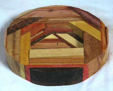 view 1: African blackwood, redheart, canary, green-colored tulip poplar, aromatic red cedar, BOX