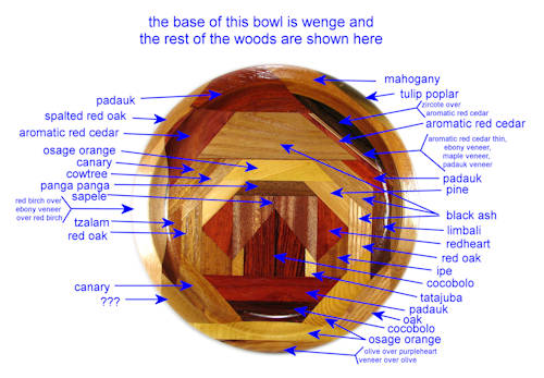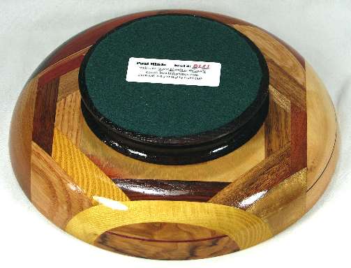flaws/issues: At the bottom, underneath, there is a layer of birch veneer that is only partially turned off under the padauk. The lower piece of birch at the left side has some small tear-outs on the right side. This started off as a major edge-chip flaw but I turned further until only a small blemish remained.