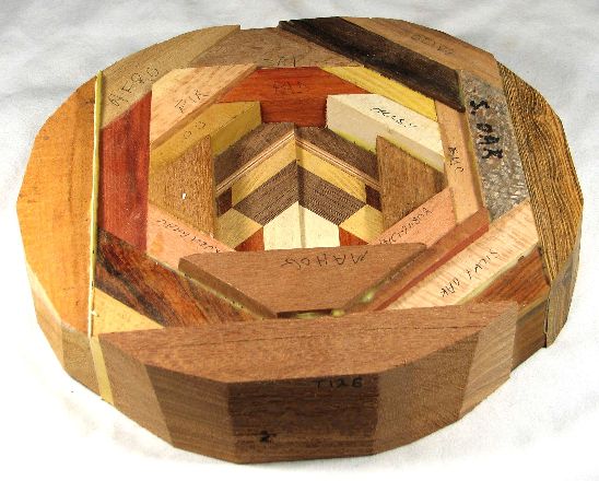 LATER: the osage orange pieces have darkened noticeably and a few of the other woods are just slightly less vibrant than when these pics were taken many years ago but basically it's still what you see is what you get.