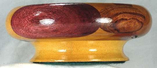 flaws/issues: The silky oak in view 6 has a gum inclusion area on the bottom, but I knew that when I used the piece and I consider it wood character, not a flaw. It shows up a little on the top of the bowl as you can see in view 1c below.