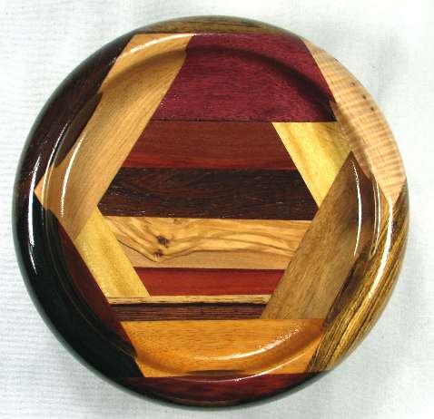 view 1: redheart over zircote over curly maple over redheart, canary, Honduras rosewood, BOX