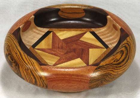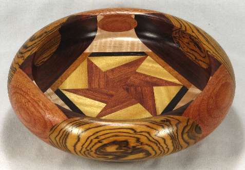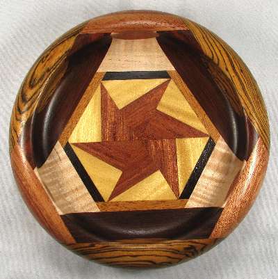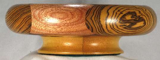 comments: This bowl is symmetrical about a line directly down the middle, or looked at another way, it is symmetrical in three sections. The woods are all very nice and complement each other beautifully.