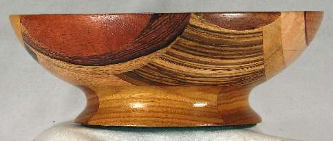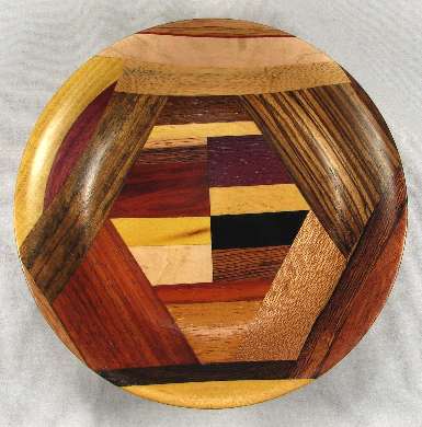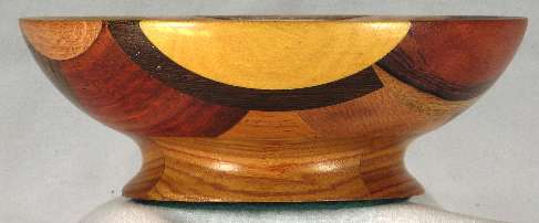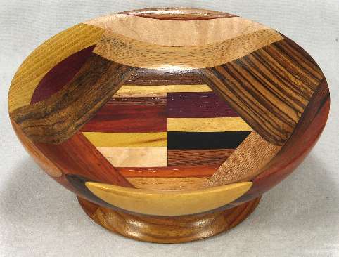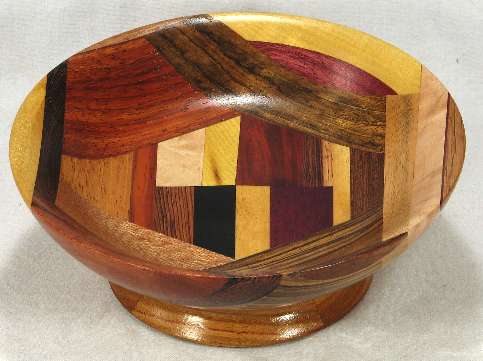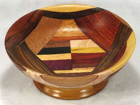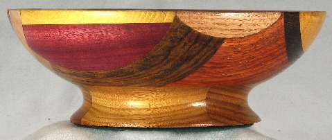 comments: The purpleheart on the lower rim in view 6 is nicely chatoyant as is the shedua in view 6. The prima vera in view 5 has a mild case of blue stain