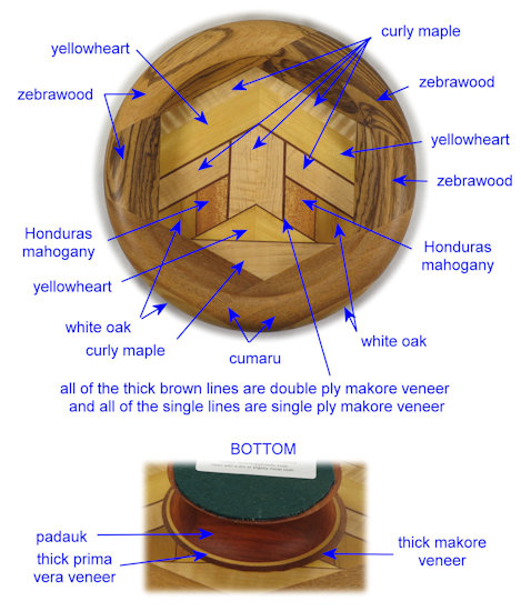 a couple of the joints on the inner rim where zebrawood edges meet the next wood over have TINY chip-outs (zebrawood can be a bit brittle).