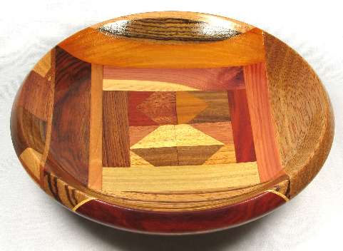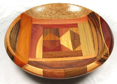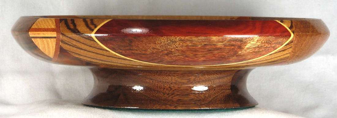 view 3: red oak over padauk over red oak, and all backed by bocote with sapwood and topped by a thin rim of hard maple. Behind all that is paela then the BOX