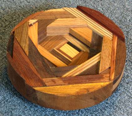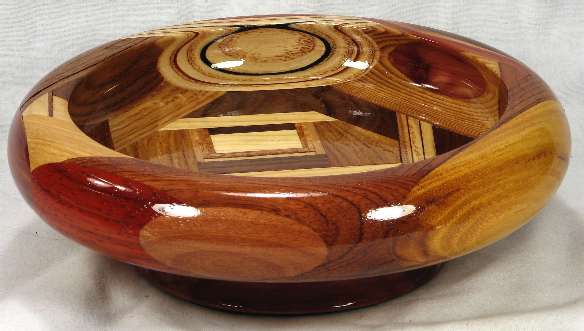 The pine in view 7 has a crack that shows up as a dark line in the wood (see the orientation view above). There is a poor glue joint in the lower right side of the BOX and the Western red cedar in view 3 has a crack that only shows on the bottom of the bowl.