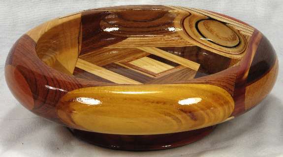 flaws/issues: The elm in view 5 has a crack. It doesn't appear to be a stress separation in the glued up bowl but rather a drying crack in the wood, but whatever it is, it is visible (see view 8a below) and very noticble to the touch.