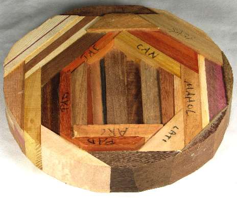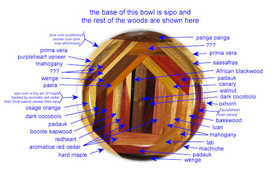 flaws/issues: there is a crack in the aromatic red cedar in the middle and also there is a hairline crack that appears to be a poor glue joint, not a stress separation. There is a barely perceptible hairline separation at the bottom of the middle. Some of the red woods have faded a bit since the pics were taken.