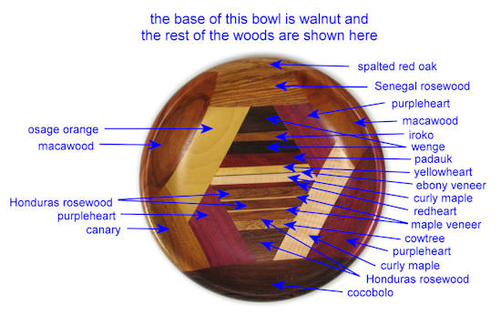 LATER: many of the woods have darkened somewhat since these pics were taken many years ago but it is still a nice bowl