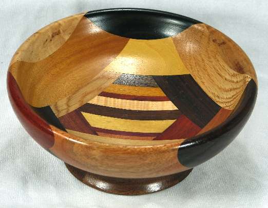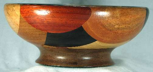 BOX: from the bottom up; aromatic red cedar, cabreuva(?), yellowheart, Honduras rosewood, curly maple, bloodwood, paela