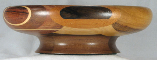 flaws/issues: the imbuia at the top has a small void at the upper left edge (it's part of the dark streak in the orientation pic). There is a stress separation along the underside of the rim on the left side but this does nothing to the appearance of the bowl but I've still kept the price pretty low because I don't like having ANY flaws in my bowls.
