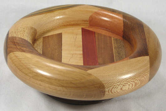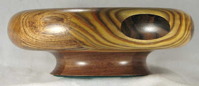 The cross-section of the rim on this one is a circle and the undercutting inside the rim where it meets the central part was a bit of a chore to get right but I like the way it turned out. Essentially, if you just had the rim, you'd have a donut. I really like it and but probably will not do more of this shape because it is a REAL pain to get the turning right where the inner rim meets the flat bottom of the middle.