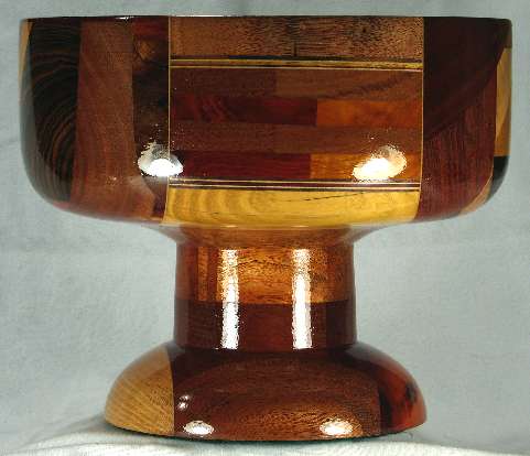 flaws/issues: The left segment of lignum vitae in view 3 has a knot that did not turn out entirely solid, so there is a rough spot. This is wood character, not a flaw --- and that's my story and I'm sticking with it :-)