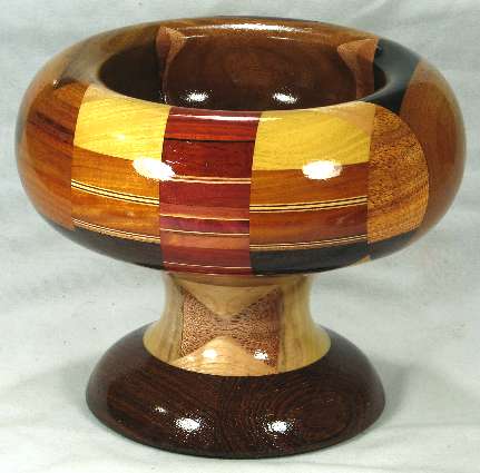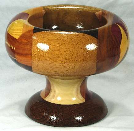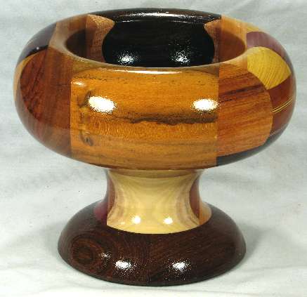 The alternating grain arrangement of the 4 sections of panga panga in the base create a nice effect and the butt end of the macawood at both sides of view 1 has a nice grain effect --- more interesting that the face grain pattern, I think, although it was a bear to turn since macawood butt end tends to crush and tear unless the lathe chisels are razor sharp