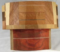 view 1, top to bottom: yellowheart, padauk, walnut, tulip poplar,red oak