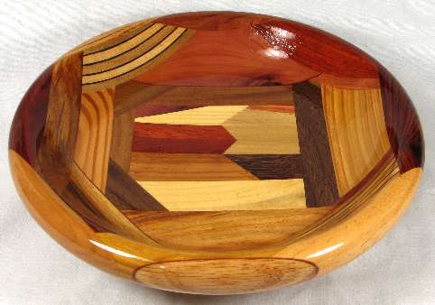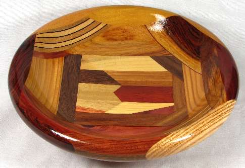 BOX: walnut on the bottom and both upper corners. left to right: pine, narra over wenge, two pieces of padauk over two pieces of prima vera, aromatic red cedar over pine over tulip with sapwood , mahogany