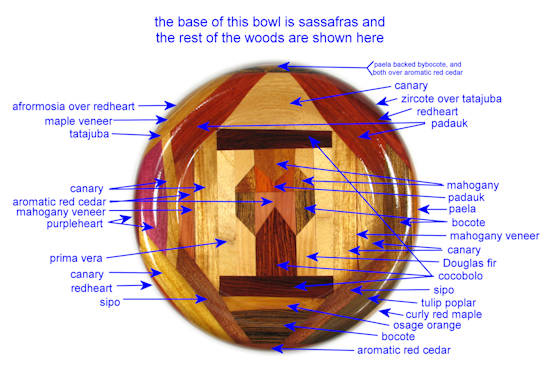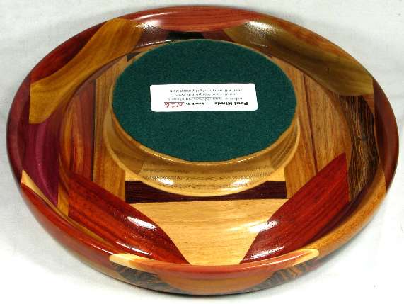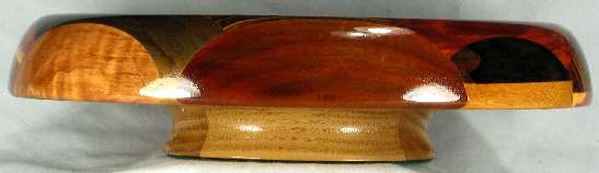 flaws/issues: In the lower left of the middle, there is a very slight indentation. I don't remember knocking this into anything, but I have to believe I did, since it is clearly a dent. It IS very minor, but as always, I try to point out anything I see that could be considered a flaw. There has been some color fading and darkening since the bowl was made, many years ago, sadly including the bocote at the bottom which is now less of a standout than it started off as.