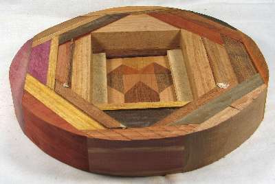 The purpleheart pieces on the left show a nice contrast of the kinds of color you get in purpleheart. The inner piece is a vibrant purple with no chatoyancy and the outer piece is a lighter color but it IS chatoyant.