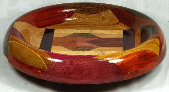 the bowl blank, then raw (fresh off the lathe), then with an application of natural stain, then as the finished bowl