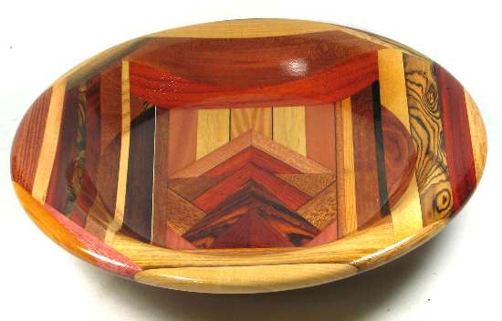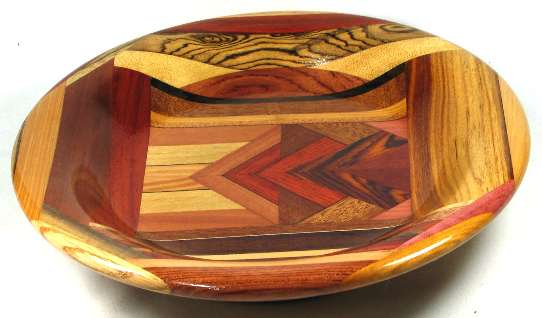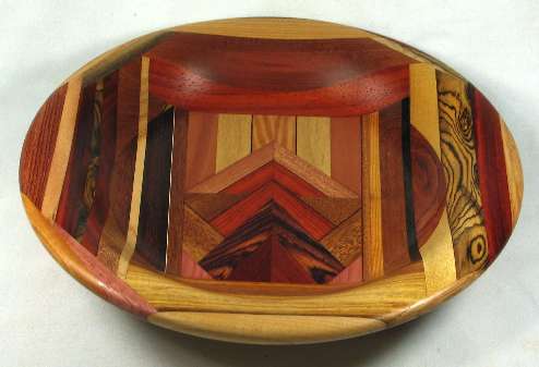 comments: To me, this bowl is simply spectacular! I really liked what I built up as the "BOX" on this one and after that I felt that this one could be among my best, so I took extra care in selecting the other pieces that I added to the blank and I am just delighted with the result. The woods I select for these bowls sometimes look worse that I expect them to (and occasionally better) but on this bowl, everything turned out just GREAT, with the slight exception of the minor flaws in the bocote. The shape is a totally new one for me and I love it (so will certainly do more of them) and that combined with the excellent appearance of the woods selected make this what I feel is the best bowl I've turned up to this point (July '06)