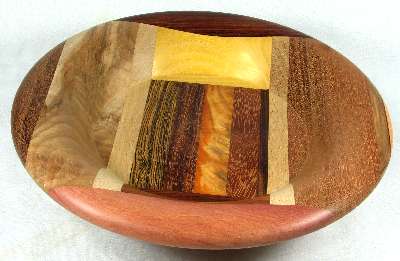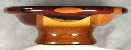 view 1: redheart (pink/purple sapwood merging to red heartwood that only shows on the bottom of the bowl), cocobolo, BOX