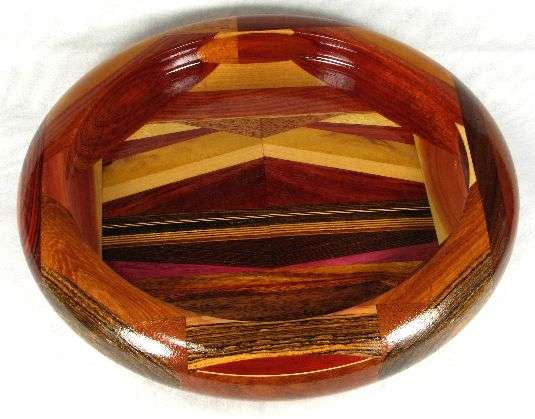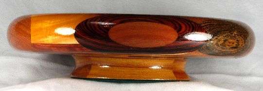 comments: There's a lot of spectacular wood in this one, especially the padauk in the box, the canary in view 1, the very bright purpleheart in the box, the cocobolo in view 7, and the paela in views 4 and 6. The canary base doesn't rise to the level of "spectacualar" but it is very nice.