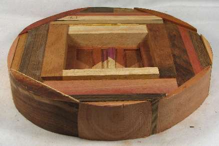 BOX: bottom middle is obeche sided by fir sided by madrone --- top middle is purpleheart sided by padauk sided by mahogany