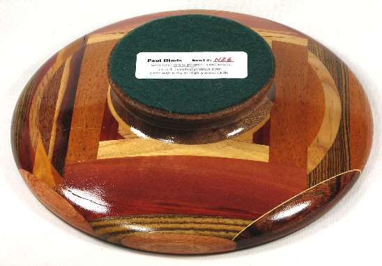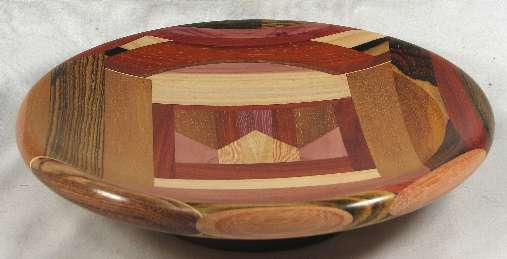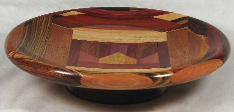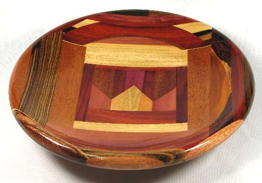 view 5: bocote over sycamore and ? (African blackwood?) over narra, red aromatic cedar, redheart, pine, redheart, red aromatic cedar, prima vera, redheart, BOX