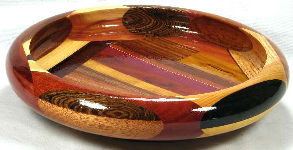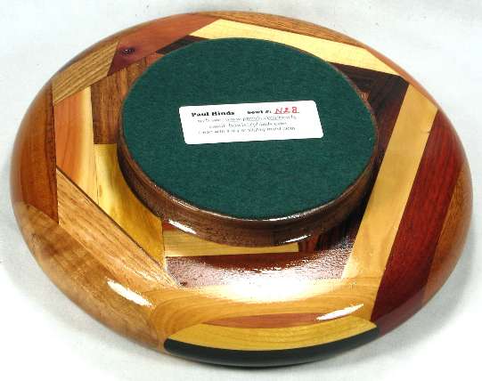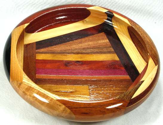 flaws/issues: There is a hairline stress separation in view 4 at the inner edge of the bocote/aromatic red cedar pair where those two pieces meet the machiche of view 3. It is hardly noticeable visually but you can feel it with your fingernail and I have reduced the price of the bowl because of it. Some of the woods have changed color somewhat since the pics were taken many years ago but it's still basically what you see is what you get.