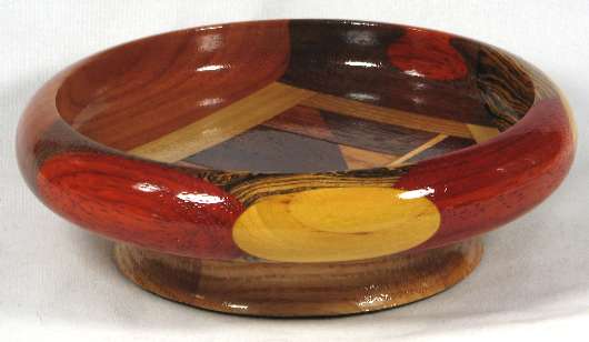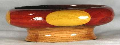 MAJOR FLAWS: the pieces of ash in both view 4 and view 5 have separations that have been filled with glue to stabilize the bowl. There is also a slight separation of the ash in view 6. This is a nifty little bowl, but because of the separations, I've priced it at next to nothing.