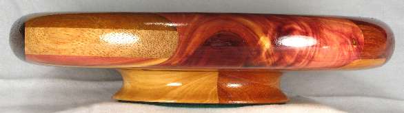 BOX: in the middle is padak over canary and above that is osage orange, redheart, canary, and then in the upper corners, wedges of Peruvian walnut