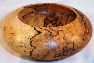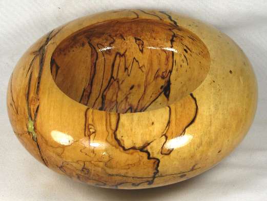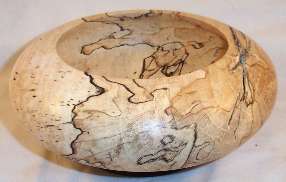 comments: the wall is quite thick on this one because I did not want the innner curve to dig any further into the flaw line (see the rear of view 5c below). Despite the major flaw, this is a marvelous piece of spalted maple
