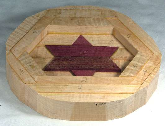 The star is purpleheart and all the other wood is curly maple