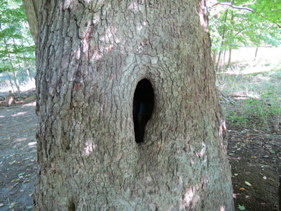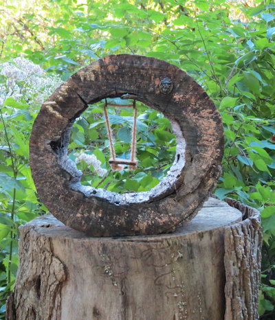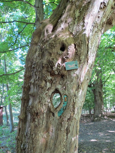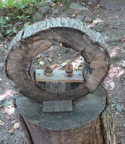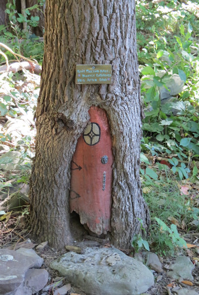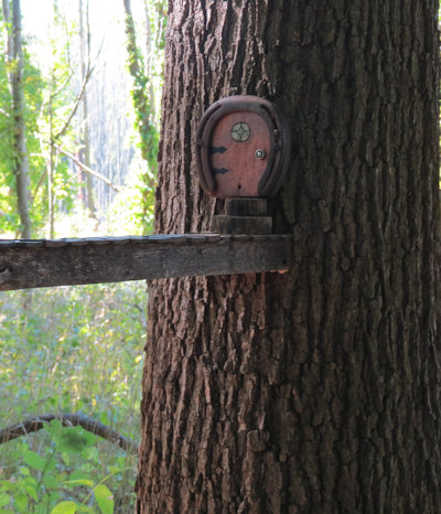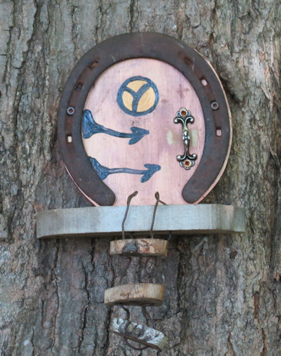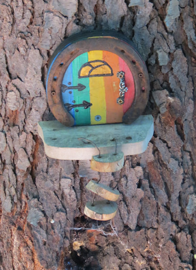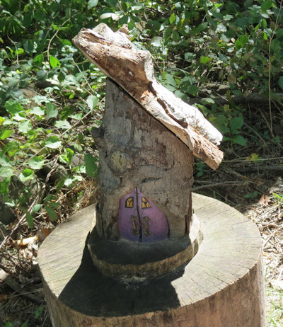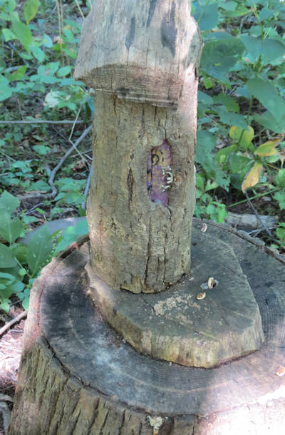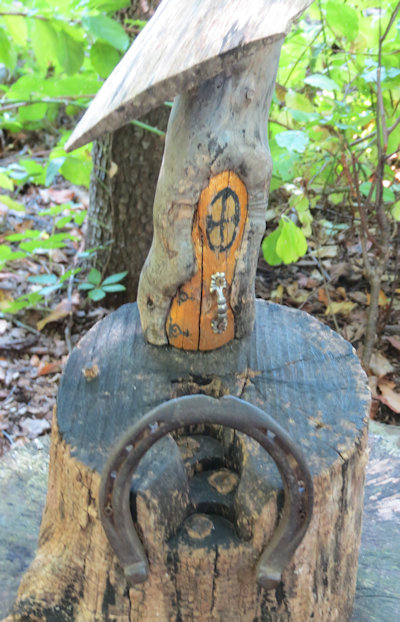 Notice the stairs cut into the stump under the horseshoe entrance.
