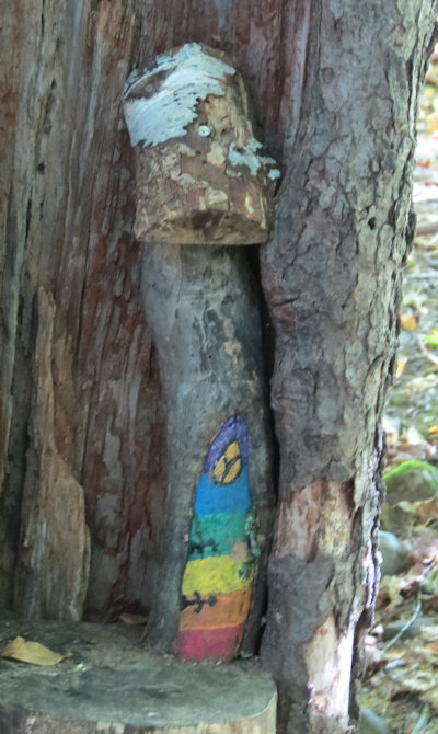The one on the right was just painted on a rock with a painted acorn in a gap in the rock.