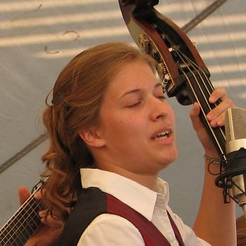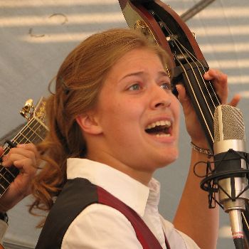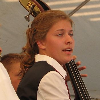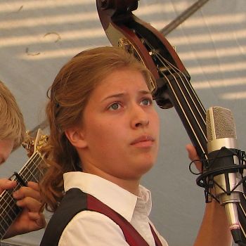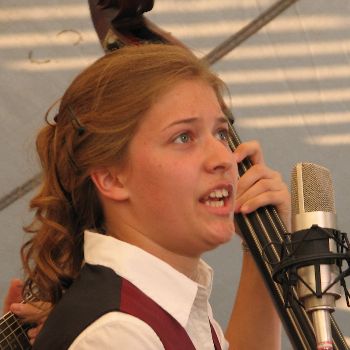 She dropped that big stringed thingy on her foot and it hurt like a son of a gun but she decided to just grin and bear it. This is not really a terrific grin, but it will have to do.