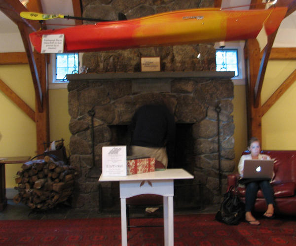 lobby from front entrance (doesn't show full extent) --- the kayak is there for a raffle