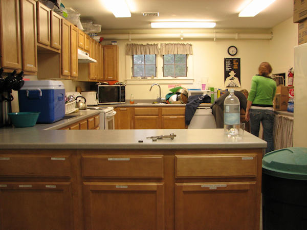kitchen area off of lobby to the left from main entrance