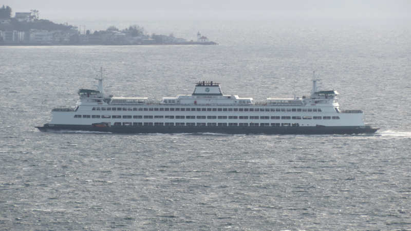 Zoomed shot of the Seattle/Bainbridge ferry from Kinnear Park on Queen Ann Hill