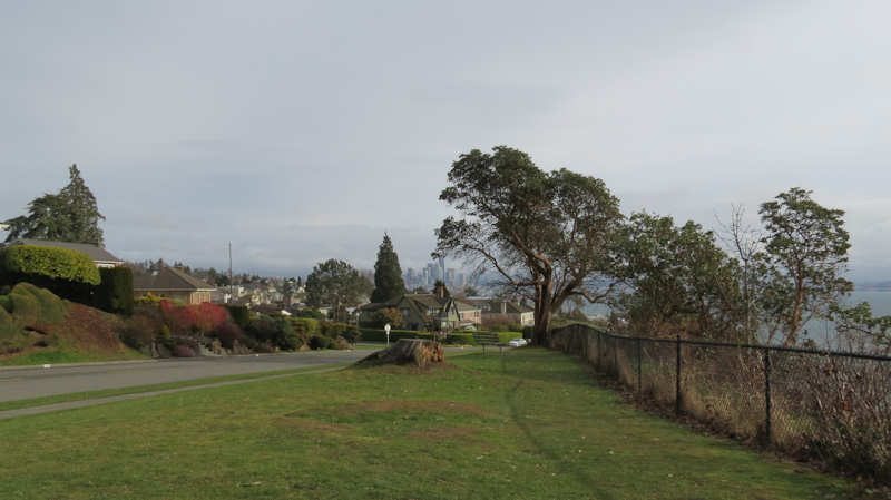 Puget Sound from from Kinnear Park on Queen Ann Hill with the Northern tip of West Seattle one the left and Bainbridge Island in the middle and right background (it's a lot longer than just the part you see)