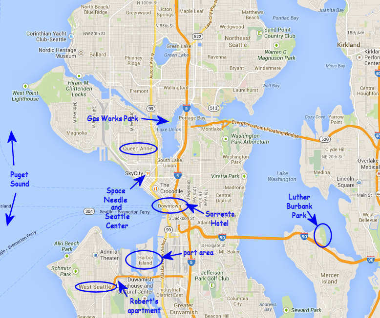 map of Seattle showing some of the areas mentioned in the pics and videos