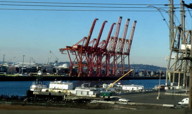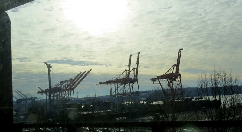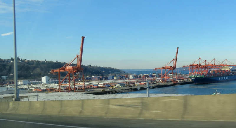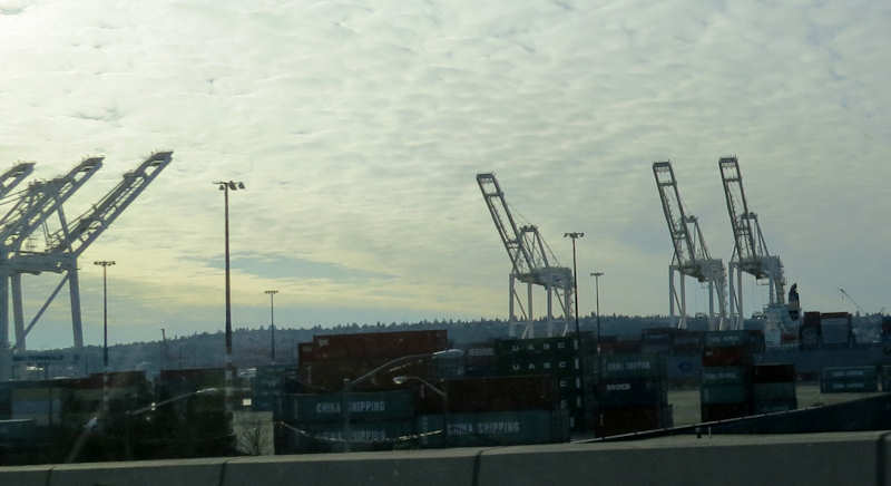 Various shots of the Port of Seattle take from various angles. The cranes are really gigantic. overview of Harbor Island and the port area (pic found on the internet ... this shows it all together better than any of my pics)